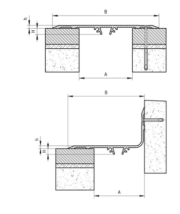 Накладные конструкции деформационных швов ПСН, прямые и угловые для широких швов с креплением на саморезы.